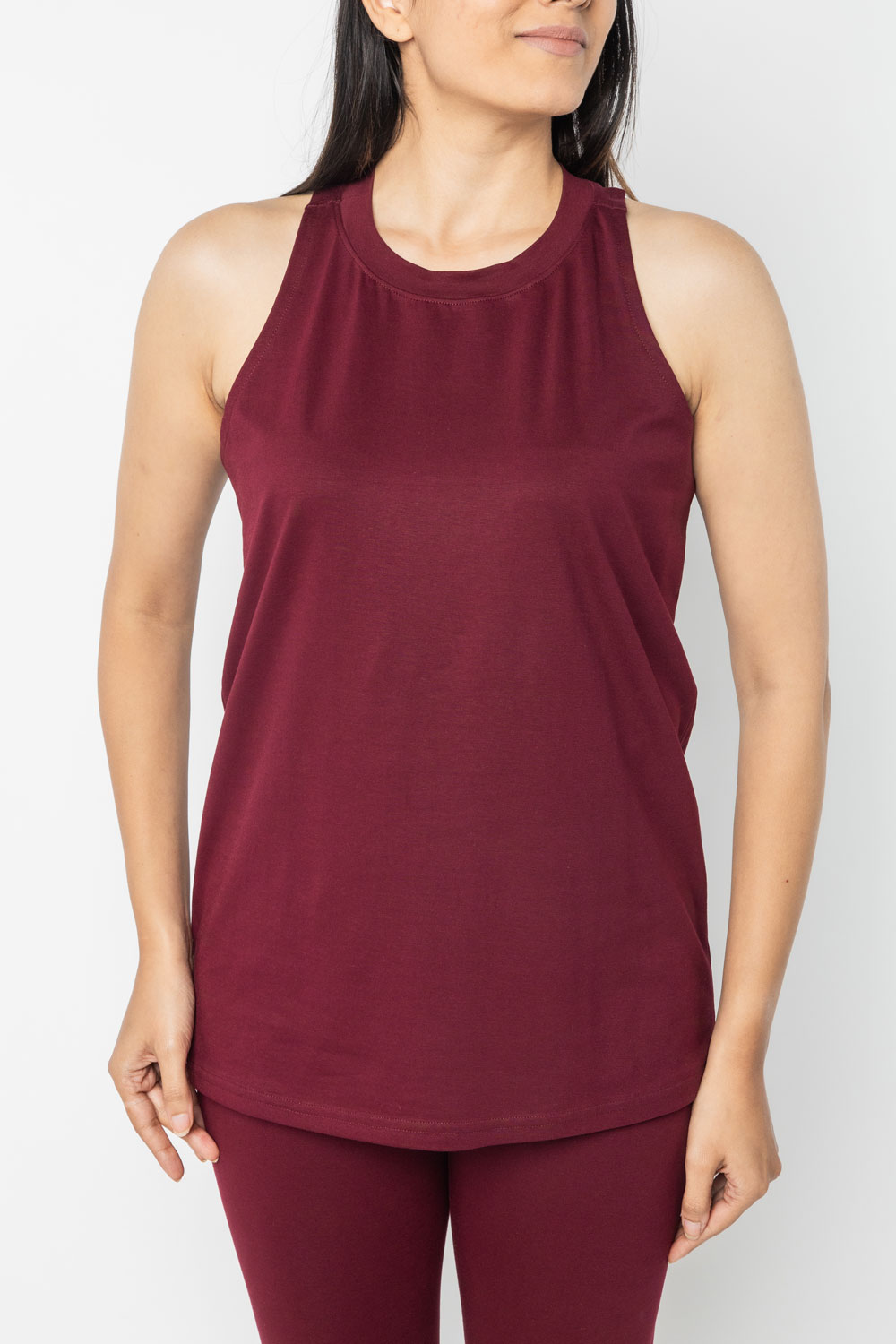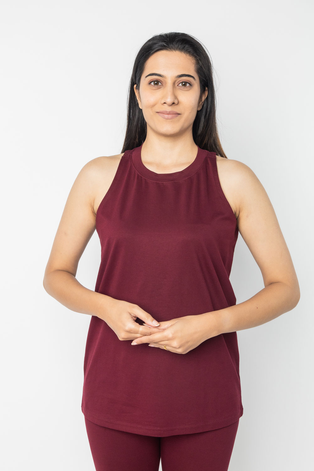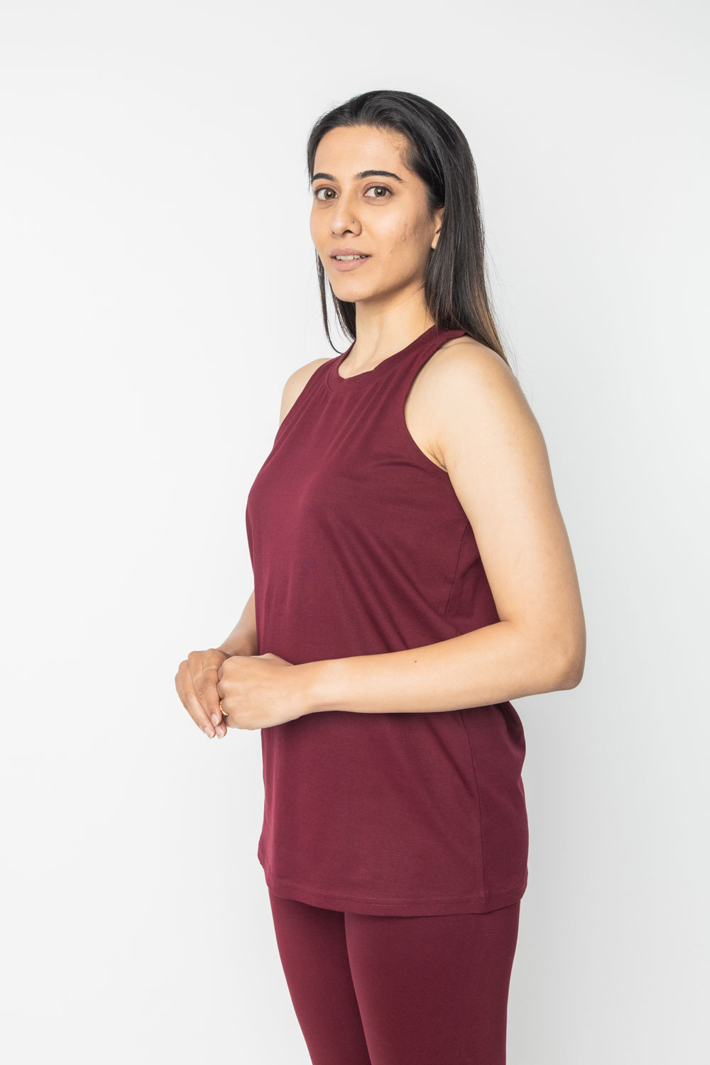 Flow Freely in Comfort – Maroon Sleeveless Tee